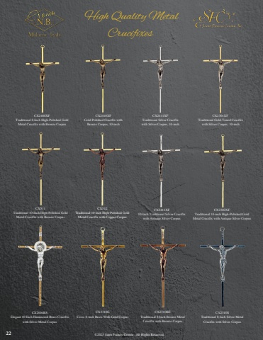 CX511Traditional 10-Inch High-Polished GoldMetal Crucifix with Bronze CorpusCX2411XFTraditional Silver Crucifixwith Silver Corpus, 10-inchCX2301XFTraditional Gold-Toned Crucifixwith Silver Corpus, 10-inchCX512Traditional 10-inch High-Polished GoldMetal Crucifix with Copper CorpusCX2412XF10-Inch Traditional Silver Crucifixwith Antique Silver CorpusCX2408XFTraditional 8-Inch High-Polished GoldMetal Crucifix with Bronze CorpusCX2410XFGold Polished Crucifix withBronze Corpus, 10-inchCX2302XFTraditional 10-inch High-Polished GoldMetal Crucifix with Antique Silver CorpusCX2004BSElegant 10-Inch Hammered Brass Crucifixwith Silver Metal CorpusCX2310GCross 8-inch Brass With Gold Corpus22 %u00a92025 Saint Francis Cromo . All Rights Reserved.High Quality MetalCrucifixesCX2310STraditional 8-Inch Silver MetalCrucifix with Silver CorpusCX2310BZTraditional 8-Inch Bronze MetalCrucifix with Bronze Corpus