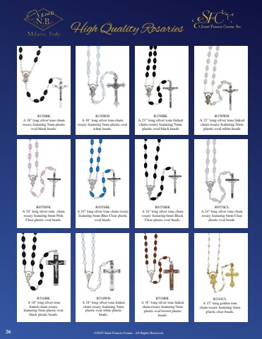 R516BRA 18\chain rosary featuring 5mmplastic oval brown plasticbeads.R955SBKA 24\rosary featuring 6mm BlackClear plastic oval beads.R150BKA 18\rosary featuring 5mm plasticoval black beads.R150WHA 18\rosary featuring 5mm plastic ovalwhite beads.R955SBLA 24\featuring 6mm Blue Clear plasticoval beads.R158WHA 21\chain rosary featuring 5mmplastic oval white beadsR516BKA 18\linked chain rosaryfeaturing 5mm plastic ovalblack plastic beads.R955SPKA 24\rosary featuring 6mm PinkClear plastic oval beads.R516WHA 18\chain rosary featuring 5mmplastic oval white plasticbeads.R22GCLA 15\chain rosary featuring 4mmplastic clear beads.26 %u00a92025 Saint Francis Cromo . All Rights Reserved.High Quality RosariesR955SCLA 24\rosary featuring 6mm Clearplastic oval beads.R158BKA 21\chain rosary featuring 5mmplastic oval black beads