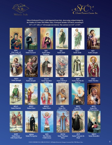 Saint Patrick of Ireland%u00a92025 CROMO N.B. MILAN ITALY All Rights Reserved. Images Licensed By CNB Basevi Inc. 78PATSaint Patrick8JUSaint Jude8MISaint MichaelArchangel8JU2Saint Jude8MPSaint Martin dePorres8PETSaint Peter8JO3Saint Joseph8PERSaint Peregrine8GERSaint Gerard8PET2Saint Peter8JNSaint JohnNeuman8DNThe DivineChild Jesus8LOYSaint IgnatiusLoyola8PPSaint Pioof Pietrelcina8STMSaint ThomasMore8PP2Saint Pioof Pietrelcina8VPSaint Vincent dePaul8JOSaint Joseph8PP3Saint Pioof Pietrelcina8NICSaint Nicolas8BENSaint Benedict8JO2Saint Joseph8SPPSaint Peterwith Saint PaulMicro-Perforated Prayer Cards Imported from Italy, showcasing original designs bythe Studios of Cromo NB (Milan, Italy). Each pack includes 125 sheets, measuring 81/2\8PHOur Lady ofPerpetual Help
